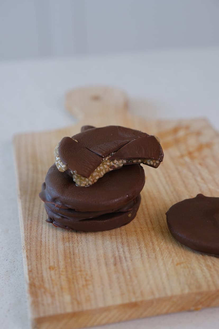 Versa il composto in 6 stampini di silicone e lascia in freezer per circa 50-60 minuti. Dopodiché, rimuovi i blocchetti dallo stampo in silicone e immergili nel cioccolato fondente sciolto.